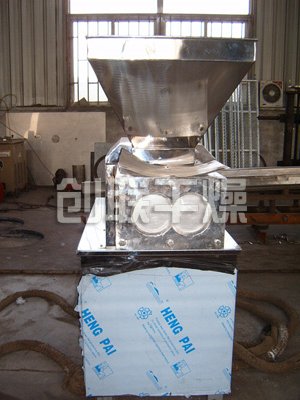 擠壓造粒的形式可以有對輥式和輪輾式兩種,對輥式擠壓是先壓成大塊,再破碎成顆粒,這樣裝置的能力大、顆粒強度高、能耗低,對輥擠壓在國外使用廣泛。輪輾式是在輥表面直接做成有穴槽型的形狀,一次擠成成型顆粒。產(chǎn)品強度較低有時(shí)需添加粘結劑。適合做有機肥和復合肥等顆粒肥料。